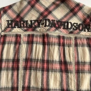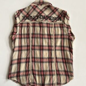 Harley Davidson Short Sleeve Pink Plaid Button Down Shirt