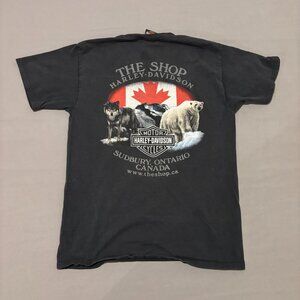 Harley Davidson T Shirt Medium Black Y2K Biker Grunge Wolf Bear Ontario