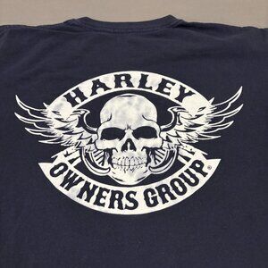 Harley Davidson T Shirt Medium Navy Blue Skull Pocket Y2K Biker Owners Group