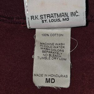 This shirt DOES HAVE FLAWS. Note the main picture - white "stains" which are not bleach; I have not been successful in figuring out how to clean without bleach. Honestly, I haven’t been able to wear it for many years, so I just "forgot" about it. It was very much loved. This particular shirt runs true to size and is priced accordingly to reflect that I am unsure if the white discolouration on the front comes out.