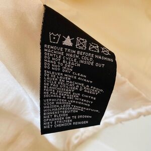 Ladies Harley Davidson Jacket, size Large. Cream in colour and is in good used condition. It is satin with polyester fill and features a removable rabbit fur collar. 2005 vintage. It features two outside zippered pockets and one zippered inside pocket. Side panels and under arm panels are satin, not poly filled. It has zippers on the sleeve openings. There is a tiny loose thread on the front, see picture. Bust is 44”, side seam 12”, back length 22.5”, underarm seam 18.75”