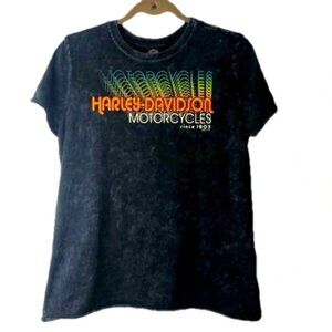 Harley Davidson Women’s T-shirt L Black Acid Wash Graphic Logo New Hampshire