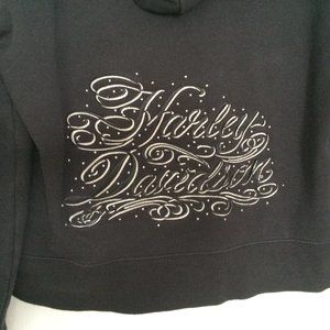 Harley Davidson Womens Hooded Jacket Small Black Embroidered Studs Zip 2010 HD