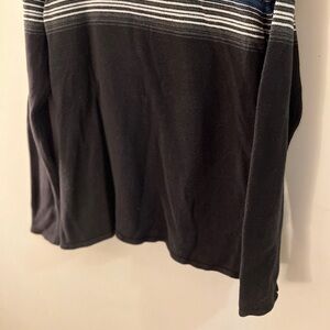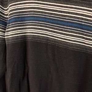 Stay warm and stylish with this black and blue striped sweater. Perfect for any casual occasion.