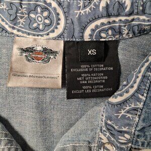 Crafted from faded blue denim, this shirt with pearl-embellished snaps is perfect for any Harley-Davidson collector's wardrobe.