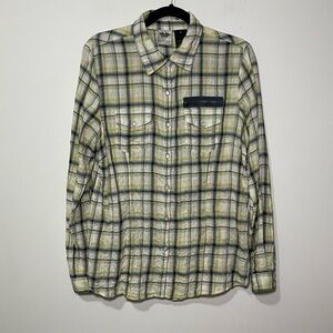 Harley Davidson women's yellow plaid seersucker pearl snaps long sleeve in M