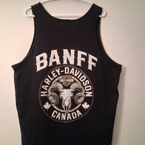 Harley-Davidson Banff Canada Ram Skull Tank Top | Black Sleeveless Biker Shirt