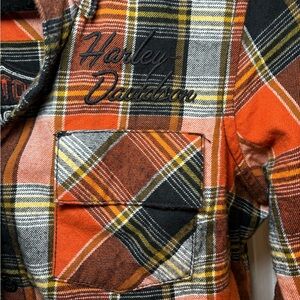 Harley-Davidson - Biker Long Sleeve Orange&Black Button-Up Plaid Shirt in Size S