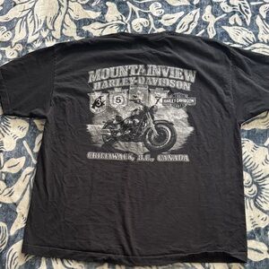 Bold black tee with striking neon green skull design. Features Harley-Davidson logo.