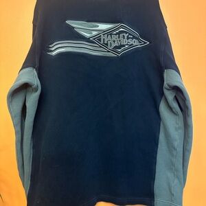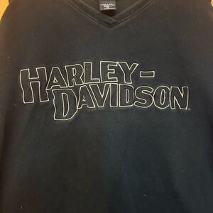 Stylish Harley-Davidson crewneck sweater. Features bold logo on front. Comfortable and warm.