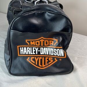Harley-Davidson Black and Orange Duffel Bag with Iconic Logo Vegan Leather Zip