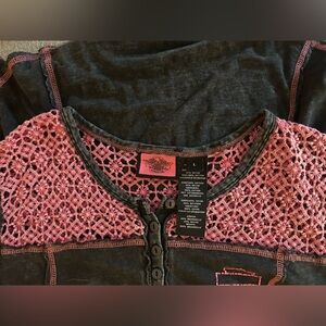 Harley-Davidson Black and Pink Graphic 3/4 Sleeve Blouse