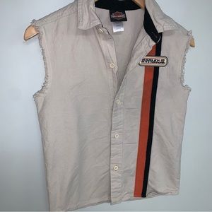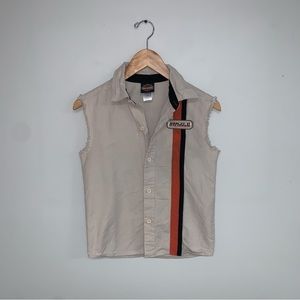 Harley-Davidson Blow-Out Shirt Big Boys' Size 8/10 Beige Sleeveless Button-Up