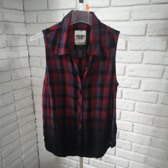 Harley-Davidson Genuine Motor Clothes Ladies Sleeveless Red Plaid Blouse