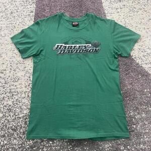 Ride in style with this vibrant Harley-Davidson graphic tee. Made from soft, breathable cotton, this shirt features the classic Harley-Davidson logo on the front, showcasing your love for motorcycles and adventure. The back boasts a stylish 'Kitchener, Ontario, Canada' print, adding a unique touch. Ideal for casual outings or riding, this shirt combines comfort with bold design.