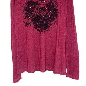 Harley-Davidson Long Sleeve Shirt Blouse Top Studded Rhinestone Red Women's 1W