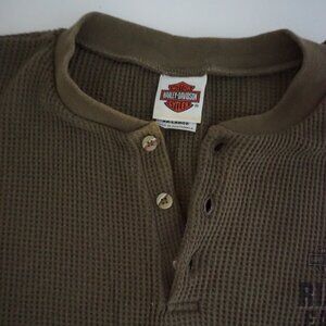 Harley-Davidson Olive Cotton Waffle Thermal Henley Cabincore Rugged XXL Outdoor