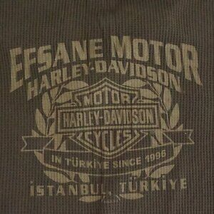 This Harley-Davidson waffle-knit henley gives that rugged Cabincore energy with an easy, worn-in feel that feels instantly at home in cooler weather. The earthy olive tone adds a grounded, outdoorsy mood, and the Istanbul graphic on the back brings in a nostalgic, collectible vibe that Harley fans always look for. It’s the kind of piece that feels authentic the moment you pull it on — relaxed, effortless, and ready for crisp mornings, long drives, or laid-back weekends.