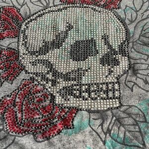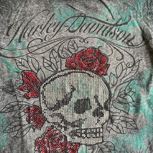 Harley-Davidson Rhinestone Tee with Skull and Roses / Rhinestone Graphic