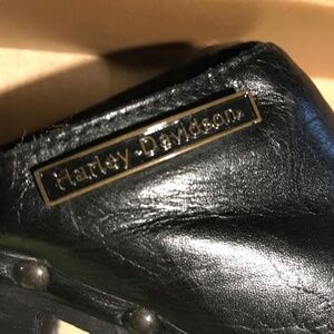 Harley-Davidson genuine leather heeled clog sandals closed-toe, black.