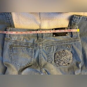 Stylish and comfortable, these Harley-Davidson women's jeans are perfect for any casual outing. The classic blue color adds a timeless touch to your wardrobe. Beautiful bling skull design on the rear pocket.