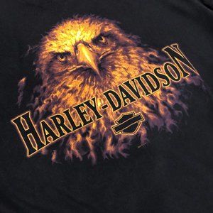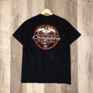 2010 Harley-Davidson black tee with H-D logo and eagle graphic screenprint at front and Charlotte, North Carolina graphic at back.