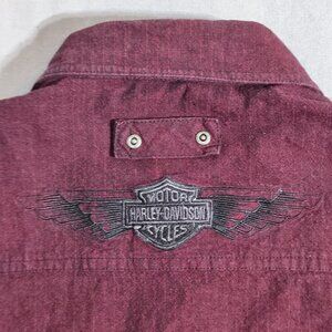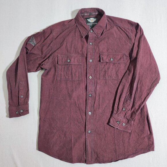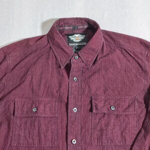 Harley-Davidson casual button down shirt men's L maroon embroidered brand name