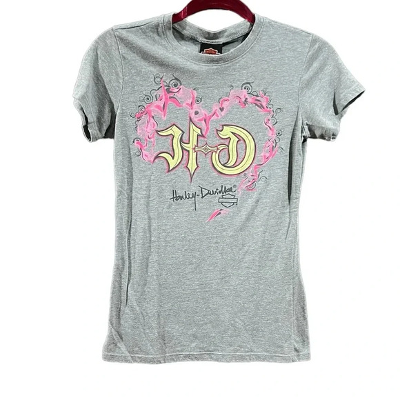 Gray Harley Davidson top. Approximately a size medium. Good used condition. Some light signs of wear in the fabric.