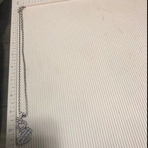 Harley-davidson Sterling White Pink Crystal Heart Bar Shield Pendant 19” / 1.8”