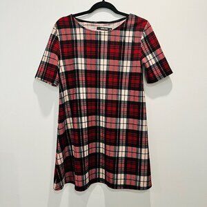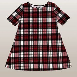 Beautiful red and white plaid short sleeve dress from Harlow in excellent preowned condition, size medium. Dress has a slightly oversized, relaxed A-line fit, would make an excellent outfit for Christmas dinner or any casual holiday celebrations coming up!