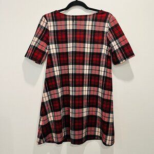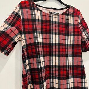 Beautiful red and white plaid short sleeve dress from Harlow in excellent preowned condition, size medium. Dress has a slightly oversized, relaxed A-line fit, would make an excellent outfit for Christmas dinner or any casual holiday celebrations coming up!