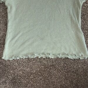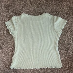 This green ribbed tee features a fitted design with short sleeves and a classic crew neckline. The soft, stretchy fabric ensures comfort while the ribbed texture adds a touch of style. Ideal for casual outings, this top is a versatile addition to any wardrobe. In great condition.