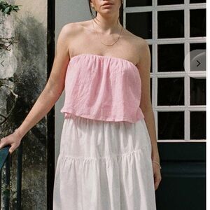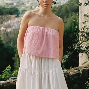 The Tully Top returns in new exquisite embroidered cotton fabric. Thoughtfully designed with a double-layered construction, this effortless strapless silhouette slips on with ease and moves seamlessly from everyday wear to special moments. A piece to style endlessly and treasure for seasons to come. Details: - 100% Cotton Deadstock - Double layered - Pregnancy & breastfeeding friendly