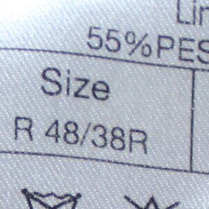 An Italian men's jacket size 48 (IT 48R) is generally equivalent to a US size 38 regular (38R). This size typically corresponds to a chest measurement of approximately 38 to 40 inches.