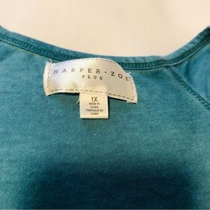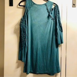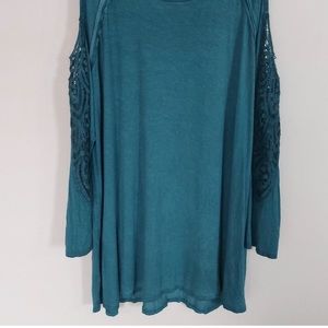 Harper Zoe Plus 1X Teal Green Cold Shoulder Long Sleeve Lace Insert