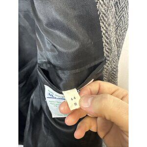 Harris Tweed 44R Sport Coat Herringbone Gray Hand Woven Scotland 100% Wool