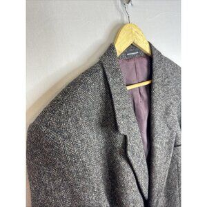 Harris Tweed Blazer 46L Men Hand Woven Scotland Gray Herringbone Wool