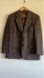 Harris Tweed. Vintage, union made. Brown wool tweed in light and dark browns. Two front pockets with flaps - still sewn shut, one breast pocket, plus two interior breast pockets. Single back vent. Two button closure, plus three buttons on each sleeve. Buttons are faux leather wrapped. Lining is in excellent condition. The whole jacket has been lightly worn and is in excellent condition.