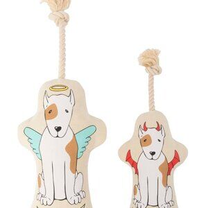 Which list is your dog on this year? This double-sided canvas toy with a sturdy rope pull is a fun reminder of the angel and devil in all pups.