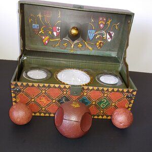 Includes: 1 Quaffle, 2 Bludgers, 1 non-removable Snitch in a Decorative Quidditch Trunk