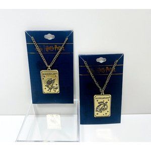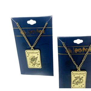 Harry Potter Hufflepuff Ravenclaw Necklace Gold Square Pendant Gift Lot New