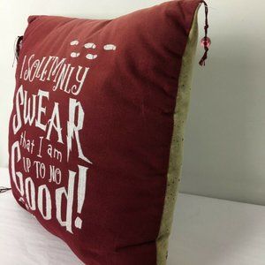 "I solemnly swear that I am up to no good" on the red (maroon) tapestry side