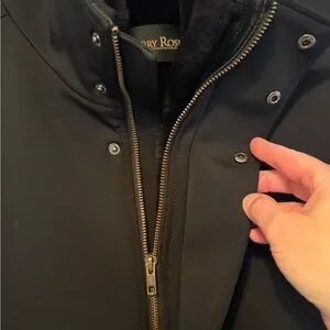 Elegant men’s black Harry Rosen plush linedcoat. The inner shearling lining can zip off. Essentially 2 coats in one. This coat is super high quality, and made to last.