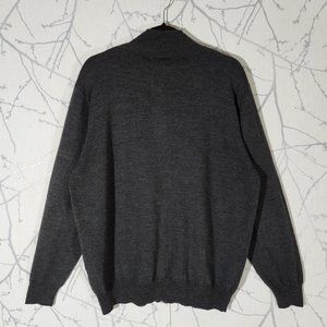 Harry Rosen Gray Diamonds Argyle 100% Merino Wool Full Zip Mockneck Sweater Preppy