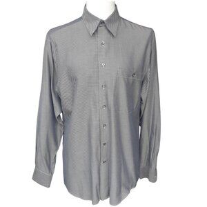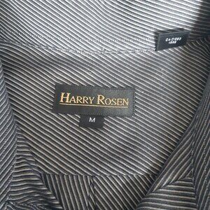Harry Rosen SZ M Cotton Striped Men's Button Up Shirt, Black & Grey