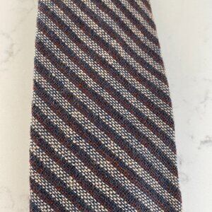 Harry Rosen Woven Textured Striped Wool Silk Blend Tie in Tan Burgundy + Blue - no fabric tag