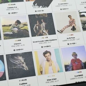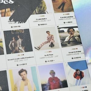 Contains 50 4x6 cardstock images of Harry along with the songs & listening time of his whole discography! It also includes sticky circles to adhere to the back so you can start creating your wall collage immediately! The ultimate must-have for any Harry fan!