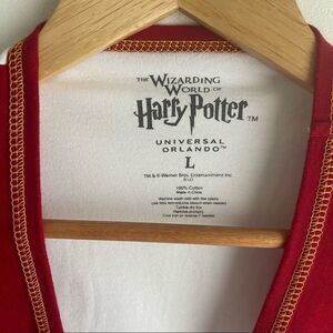 In excellent condition. Harry Potter Gryffindor 07 baseball style shirt. With a white body, red sleeves and gold accent color. From The Wizarding World of Harry Potter at Universal Orlando. 100% cotton. Flat lay measurements: 19" pit to pit, 24" length, 17" sleeve.