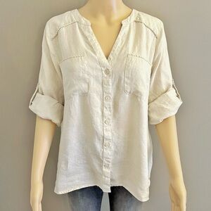 Harve Benard 100% Linen Minimalist Casual Relaxed Fit Button Down Shirt Blouse.