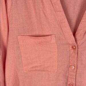 Harve Benard 100% Linen Salmon Relaxed Blouse with 3/4 Sleeves & Mandarin Collar